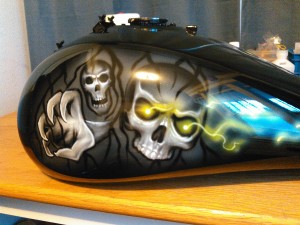 airbrush on motorcycle tank skulls